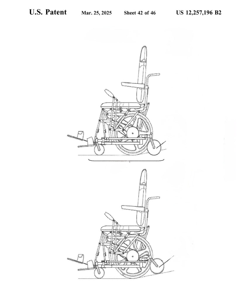 In 2025 the Patent for the AAD Wheelchair was issued for users with spinal cord injuries who have limited or no movement in the legs. The unique new back, seat and gearing system design of the AAD wheelchair supports the natural alignment and curvature of the spine and inhibits inelasticity of the joints by creating movement, motion in the lower limbs while keeping the head and shoulders upright and centered over the body.